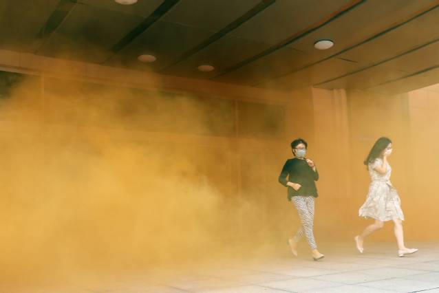 消防疏散演练阶段。在疏散引导员的指引下,行远楼内的各部处的工作人员演练了疏散撤离自救。在行远前广场,世园消防中队官兵为参加消防演练的各部处的工作人员讲解了消防安防及逃生自救知识,并现场演示灭火器使用方法。大家根据演示,依次上前体验灭火器的使用和扑灭初起火灾。