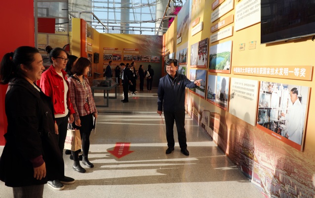 中国海洋大学研究项目获国家技术发明一等奖、海水养殖的“五次产业浪潮”……展览上的中国海大元素,吸引大家驻足端详,不时交流讨论,重温历史岁月,汲取精神力量,牢记初心使命,坚定前行方向。在“中国海洋大学申报、中国工程院院士管华诗领衔完成的发明项目‘海洋特征寡糖的制备技术(糖库构建)与应用开发’获得2009年度国家技术发明一等奖”展板前,支部党员、党委宣传部部长、新闻中心主任陈鷟为大家生动讲述了管华诗院士和他的团队不畏艰难险阻、勇攀科技高峰的故事。