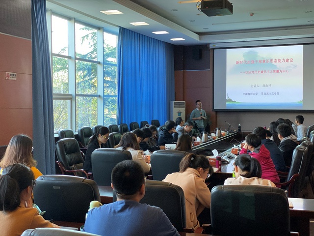 为扎实推进“不忘初心、牢记使命”主题教育,11月15日上午,人事处、党委教师工作部“人事处小讲堂”系列活动举行第4讲,邀请马克思主义学院刘永祥副教授以“新时代加强干部意识形态能力建设——以应对历史虚无主义思潮为中心”为题作专题讲座。人事处、党委教师工作部党支部全体成员,以及领导班子联系的学生班级和支部部分同学参加会议。党支部书记李召斌主持会议。