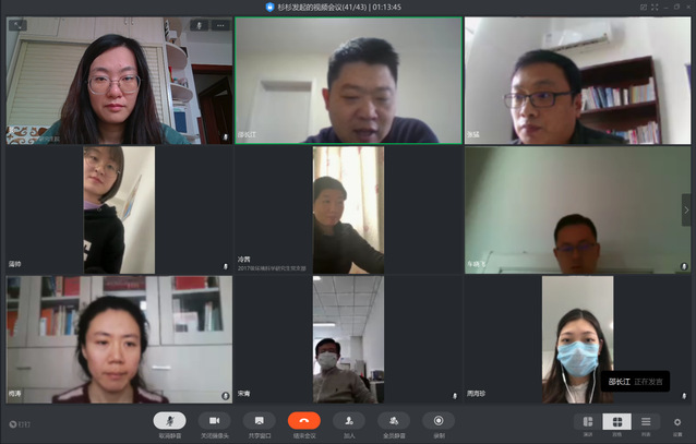 党支部书记张猛在发言中指出,疫情期间,支部的党员同志们放弃休息,积极投入到特殊时期的各项工作中。随着疫情发展,希望党员同志和同学们认真学习落实习近平总书记关于疫情防控的重要指示批示精神,变压力为动力,化危机为契机,能做到在关键时刻挺身而出,积极作为,勇于担当。张猛同志还叮嘱同志们时刻做好个人防护工作,不放松警惕,确保自身健康安全。党支部副书记邵长江就学业、就业等情况与研究生党员们进行了交流。