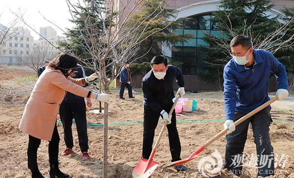 阳春布德泽,万物生光辉。3月17日下午,中国海洋大学机关党委和后勤党委部分党员在崂山校区文科院系楼东南角联合开展“吾爱吾校——我为校园添一抹绿”义务植树活动,为校园添新绿,共建美好校园。学校党委书记田辉、党委常务副书记张静、副校长李巍然、总会计师王剑敏和同志们一起栽种树苗。