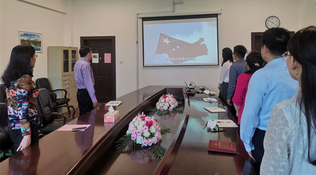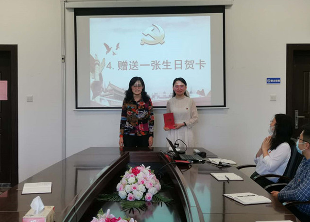 随后,于淑华同志代表党支部向任梦媛同志赠送了一张政治生日贺卡,并送上生日寄语。支部全体党员共唱了一首爱国歌曲—《歌唱祖国》,共同表达了对祖国的祝福和热爱,也激发了全体党员的爱国情怀。