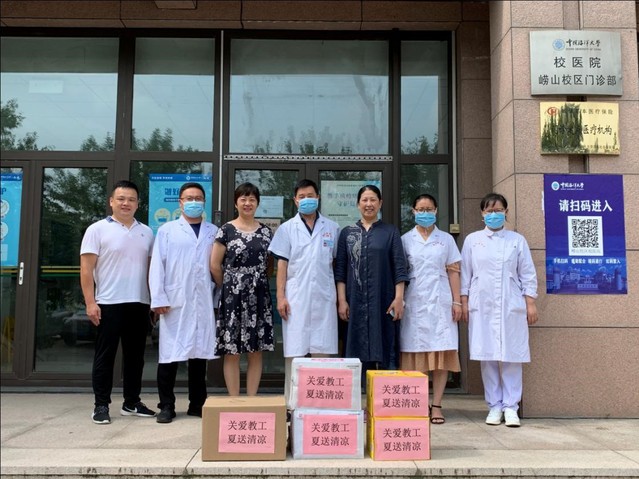 工会、妇委会党员来到了崂山校区西门、校医院、第二食堂、国际教育学院、西海岸校区建设指挥部等部门,走访看望了工作在一线的教职工。党支部书记、工会主席毕芳芳代表校工会感谢大家不畏酷暑、默默奉献、辛勤工作,认真履行岗位职责,同时将一份份“清凉”送到大家手中,并叮嘱大家在做好工作的同时一定要注意防暑降温、疫情防控,做好个人保护,确保安全健康工作。