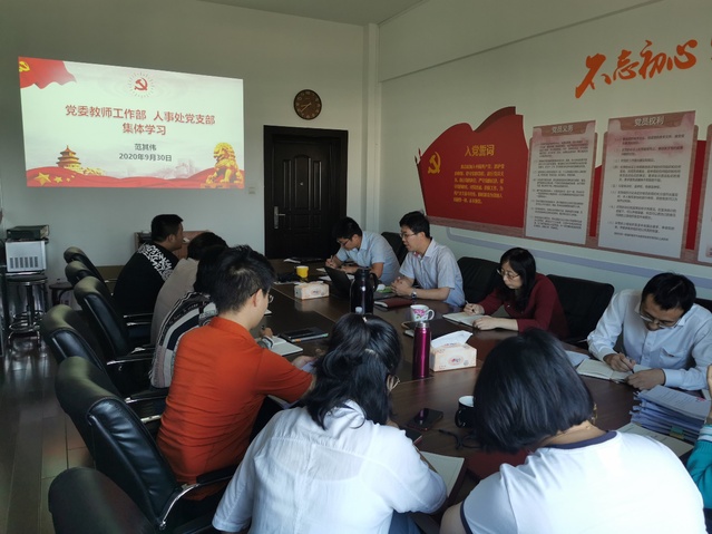 9月30日上午,机关党委教师工作部、人事处党支部在行远楼425会议室组织全体党员集体学习习近平总书记在中央政治局第二十一次集体学习时的重要讲话精神,党支部书记范其伟以“贯彻落实好新时代党的组织路线 不断把党建设得更加坚强有力”为主题进行了讲解。
