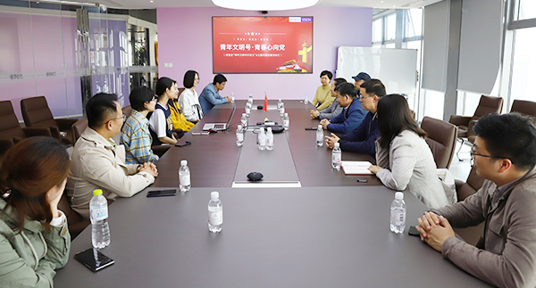 5月13日下午,结合党史学习教育,坚持新闻宣传“两健全,两走向”的工作目标 ,机关党委宣传部新闻中心党支部组织党员赴新媒体矩阵发展活跃公司——青岛视觉志文化传媒有限公司调研。双方就企业文化、融媒体建设、新媒体发展趋势等进行了座谈交流。