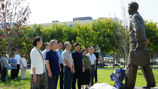 在文圣常院士塑像旁,管长龙教授,学校第二十五届文苑奖学金获得者、2025级物理海洋学博士研究生葛子涵代表师生敬献鲜花,与会师生共同瞻仰先生塑像,追思先生风范。