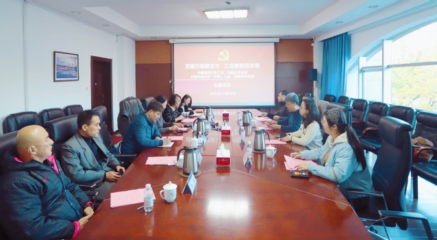 为深入学习贯彻党的二十届四中全会精神,坚持党建带工建,强化理论武装,加强高校间工会、妇委会工作交流与合作,11月19日下午,中国海洋大学工会、妇委会党支部与中国石油大学(华东)工会、妇委会党支部在崂山校区联合开展“党建引领聚合力 工会赋能促发展”主题党日活动。校工会主席、妇委会主任毕芳芳,校工会副主席、妇委会副主任、计划生育办公室主任李红涛,工会副主席曹少鹏及工会、妇委会全体党员参加活动。