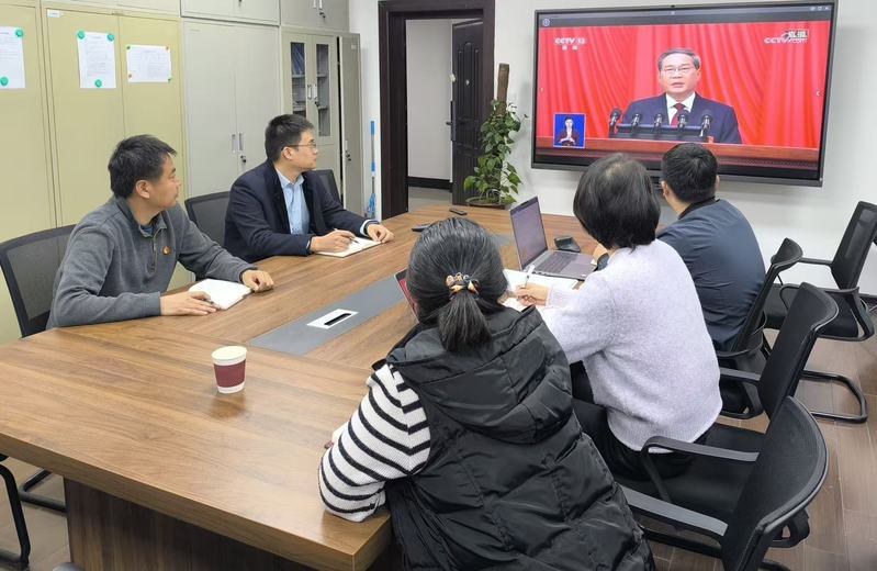 3月5日,十四届全国人大四次会议在人民大会堂开幕,国务院总理李强作政府工作报告。发展规划处党支部组织全体党员集体收看开幕会视频直播,认真学习政府工作报告。